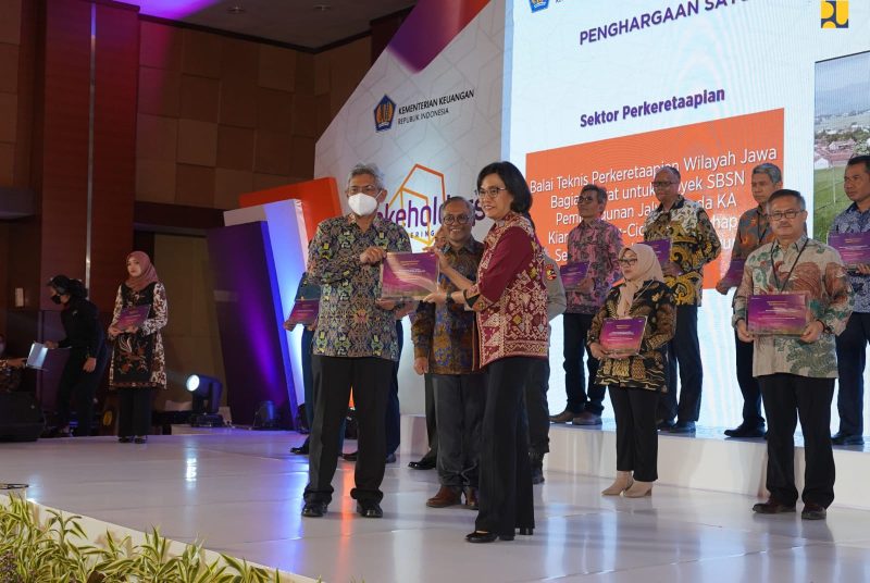 DAELPOS.com – Kementerian Pekerjaan Umum dan Perumahan Rakyat (PUPR) meraih dua penghargaan Pengelola Surat Berharga Syariah Negara (SBSN) Terbaik 2022 dari Kementerian Keuangan (Kemenkeu). Penghargaan tersebut diberikan untuk Sektor Jalan dan Jembatan serta Sektor Sumber Daya Air (SDA). Menteri Keuangan (Menkeu) Sri Mulyani Indrawati menyerahkan penghargaan tersebut kepada Direktur Jenderal (Dirjen) Bina Marga Hedy Rahadian dan Dirjen SDA Jarot Widyoko di Jakarta pada Rabu (21/12/2022).