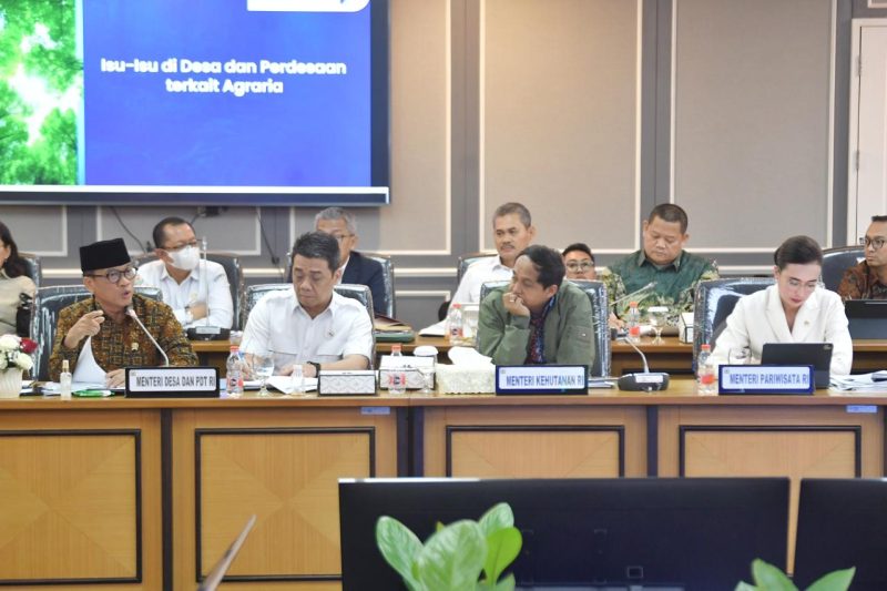 daelpos.com – Menteri Desa dan Pembangunan Daerah Tertinggal (Mendes PDT) Yandri Susanto dan Wakil Mendes PDT Ahmad Riza Patria menghadiri Rapat sekaligus Mendengarkan Masukan para Petani Terkait Strategi Percepatan Pelaksanaan Reforma Agraria di Ruang Rapat Komisi XIII Gedung Nusantara II, Rabu (24/9/2025).